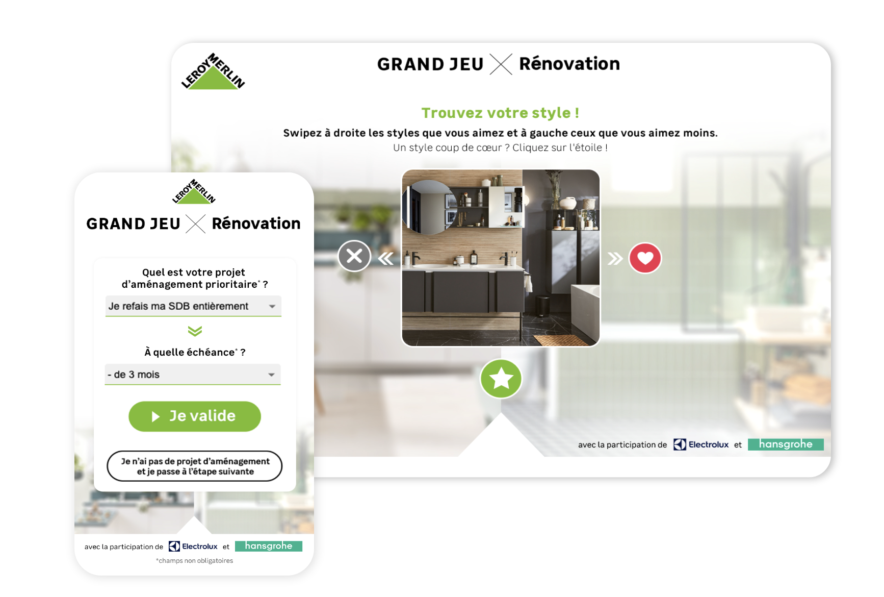 En plus de faciliter la collecte de leads, le jeu concours permet aussi de les qualifier et donc de booster son taux de conversion. La campagne « Rénovation » de Leroy Merlin a permis de collecter des leads (création de comptes clients) tout en les qualifiants grâce à la mécanique du Swiper. Ce jeu concours permettait à l’enseigne de collecter des préférences client, en fonction de leurs projets de rénovation.