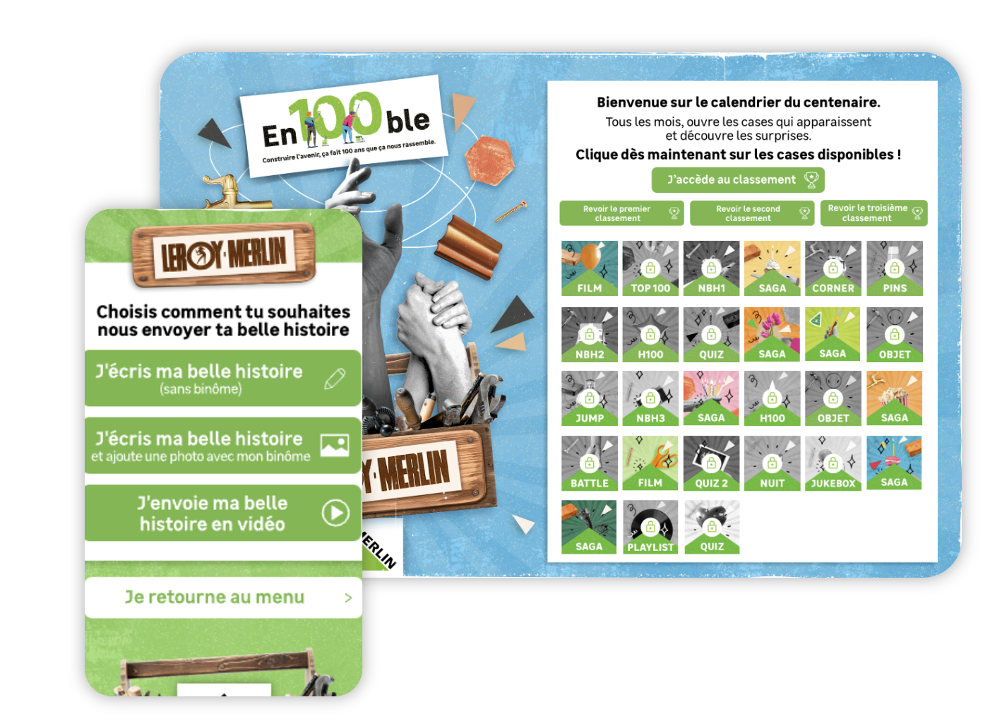 Pour célébrer son centenaire, Leroy Merlin a lancé un jeu en entreprise, s’étalant sur neuf mois, de janvier à septembre. Ce projet visait à fédérer ses 25 000 collaborateurs autour d’un évènement emblématique, tout en renforçant sa marque employeur et son image de marque.