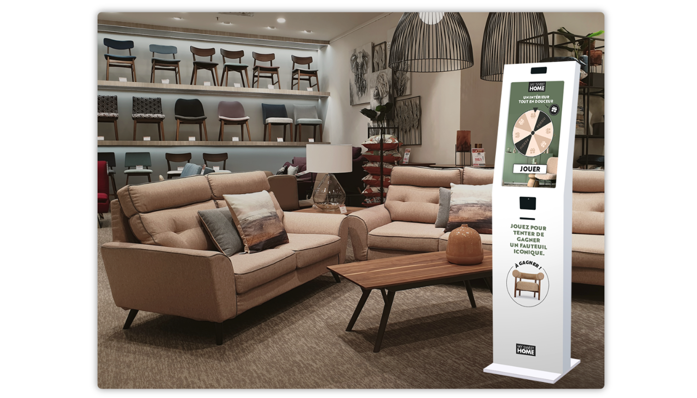 Le Playable InStore permet aux marques d’animer leurs audiences grâce à des bornes interactives. Ce type de format a pour objectif de booster les ventes et la fréquentation du point de vente. L’entreprise peut proposer un jeu post-achat pour fidéliser ses clients ou animer les files d’attente en caisse.